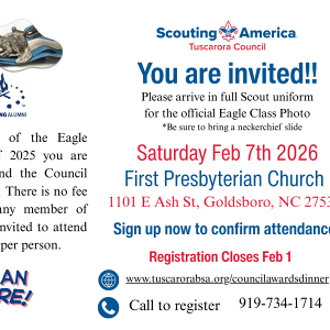 Each Eagle Scout class is named in honor of an individual who has distinguished themselves through their leadership, commitment and service to the Tuscarora Council and all attending Eagle Scouts will receive a commemorative neckerchief.